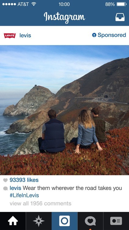 Lastly we have this classic American retailer. Levi’s focus has been the idea of living in the moment, and they express that in their photos. It helps that they have become the most recognized jeans in the world, but you would think because of that they wouldn’t see a benefit from the Instagram ads, wrong!