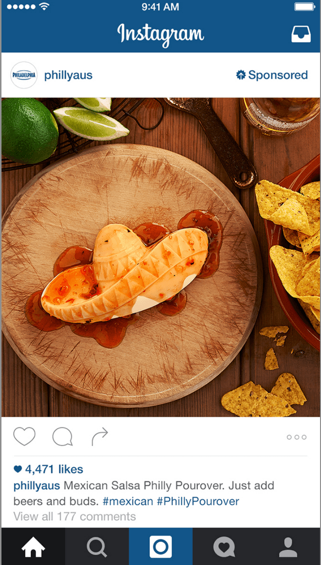Another example of a large brand utilizing the platform is Philadelphia (cheese). What type of boosts could a cheese company see? Philadelphia was one of the first companies or brands in Australia to use the Instagram advertising.